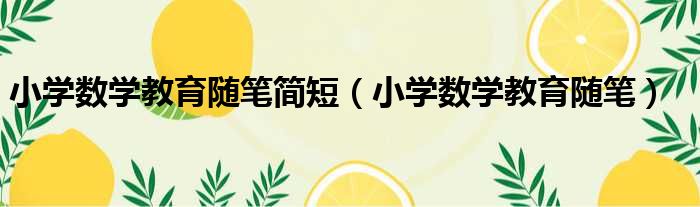 大家好,今天小六子来为大家解答以下的问题,关于小学数学教育随笔简短,小学数学教育随笔这个很多人还不知道,现在让我们一起来看看吧!