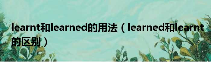 导读 大家好,今天小六子来为大家解答以下的问题,关于learnt和learned的用法,learned和learnt的区别这个很多人还不知道,现在让我们一起来看看