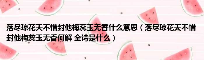 落尽琼花天不惜封他梅蕊玉无香什么意思(落尽琼花天不惜 封他梅蕊玉无香何解 全诗是什么)