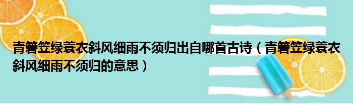 青箬笠绿蓑衣斜风细雨不须归出自哪首古诗(青箬笠绿蓑衣斜风细雨不须归的意思)