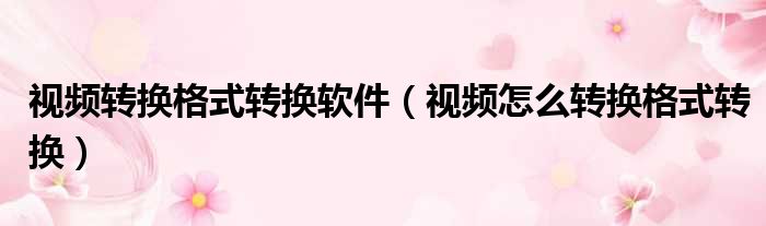 视频转换格式转换软件(视频怎么转换格式转换)