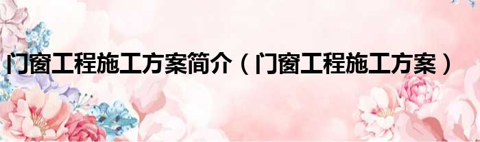大家好,今天小六子来为大家解答以下的问题,关于门窗工程施工方案简介,门窗工程施工方案这个很多人还不知道,现在让我们一起来看看吧!