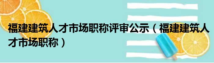 福建建筑人才市场职称评审公示(福建建筑人才市场职称)