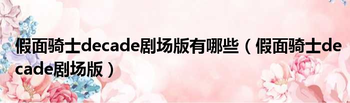 导读 大家好,今天小六子来为大家解答以下的问题,关于假面骑士decade剧场版有哪些,假面骑士decade剧场版这个很多人还不知道,现在让我们一起来