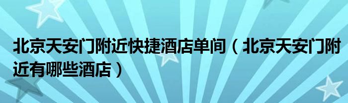北京天安门附近快捷酒店单间(北京天安门附近有哪些酒店)