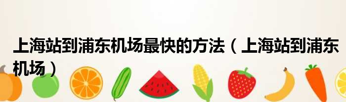 上海站到浦东机场最快的方法(上海站到浦东机场)