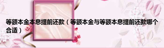 等额本金本息提前还款(等额本金与等额本息提前还款哪个合适)