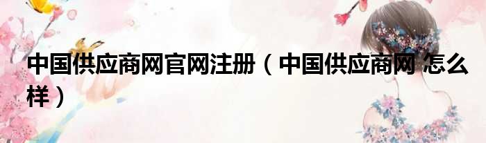 导读 大家好,今天小六子来为大家解答以下的问题,关于中国供应商网官网注册,中国供应商网 怎么样这个很多人还不知道,现在让我们一起来看看吧