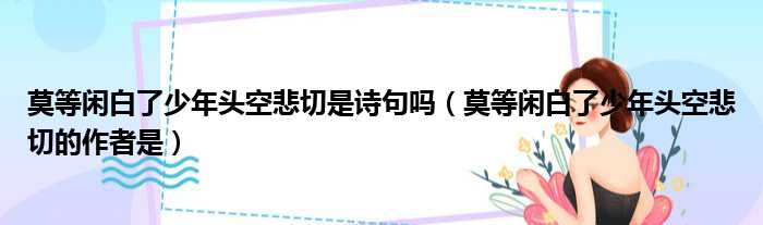 莫等闲白了少年头空悲切是诗句吗(莫等闲白了少年头空悲切的作者是)