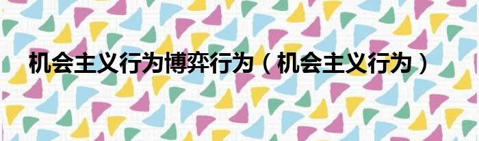 大家好,今天小六子来为大家解答以下的问题,关于机会主义行为博弈行为,机会主义行为这个很多人还不知道,现在让我们一起来看看吧!