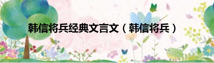大家好,今天小六子来为大家解答以下的问题,关于韩信将兵经典文言文,韩信将兵这个很多人还不知道,现在让我们一起来看看吧!