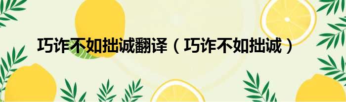 巧诈不如拙诚翻译(巧诈不如拙诚)