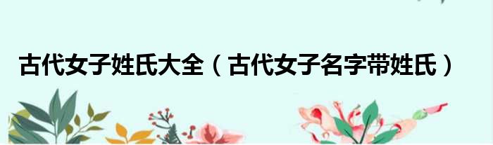 古代女子姓氏大全(古代女子名字带姓氏)