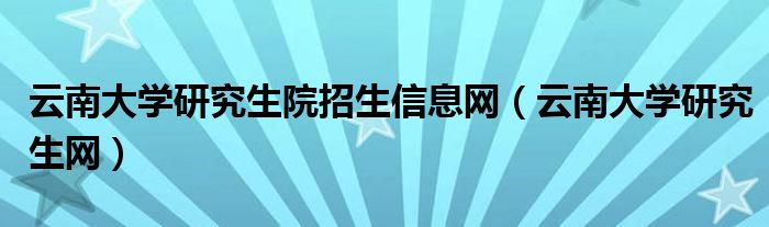 云南大学研究生院招生信息网(云南大学研究生网)