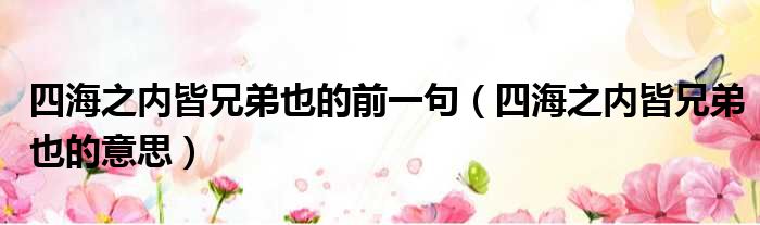 四海之内皆兄弟也的前一句(四海之内皆兄弟也的意思)