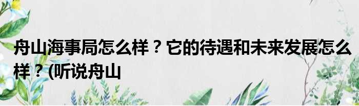 舟山海事局怎么样?它的待遇和未来发展怎么样?(听说舟山