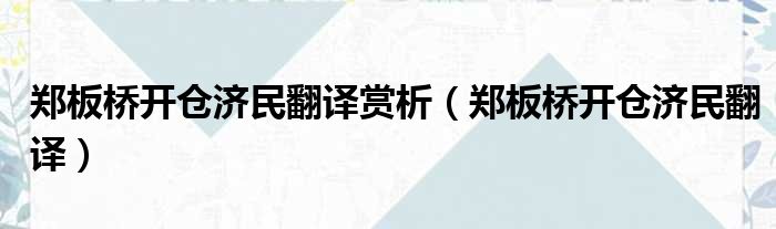 导读 大家好,今天小六子来为大家解答以下的问题,关于郑板桥开仓济民翻译赏析,郑板桥开仓济民翻译这个很多人还不知道,现在让我们一起来看看吧