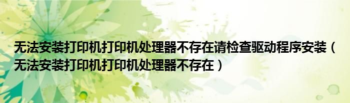 无法安装打印机打印机处理器不存在请检查驱动程序安装(无法安装打印机打印机处理器不存在)