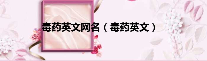 导读 大家好,今天小六子来为大家解答以下的问题,关于毒药英文网名,毒药英文这个很多人还不知道,现在让我们一起来看看吧!1、poison。本文分享
