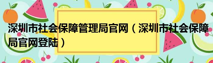 深圳市社会保障管理局官网(深圳市社会保障局官网登陆)