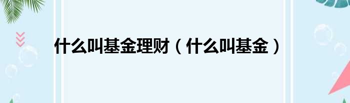 什么叫基金理财(什么叫基金)