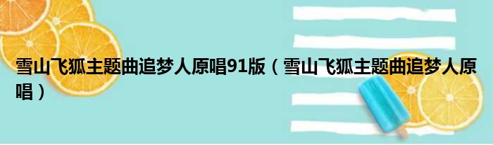 雪山飞狐主题曲追梦人原唱91版(雪山飞狐主题曲追梦人原唱)