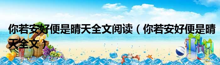 导读 大家好,今天小六子来为大家解答以下的问题,关于你若安好便是晴天全文阅读,你若安好便是晴天全文这个很多人还不知道,现在让我们一起来看