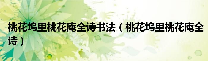 桃花坞里桃花庵全诗书法(桃花坞里桃花庵全诗)
