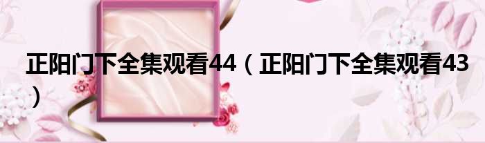 大家好,今天小六子来为大家解答以下的问题,关于正阳门下全集观看44,正阳门下全集观看43这个很多人还不知道,现在让我们一起来看看吧!