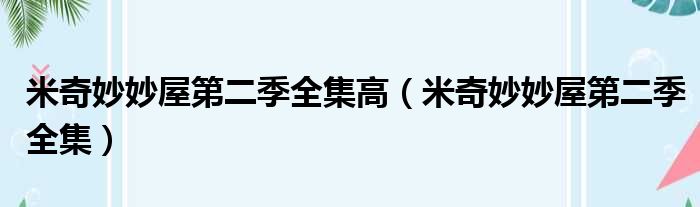 米奇妙妙屋第二季全集高(米奇妙妙屋第二季全集)