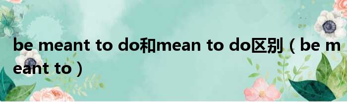 导读 大家好,今天小六子来为大家解答以下的问题,关于be meant to do和mean to do区别,be meant to这个很多人还不知道,现在让我们一起