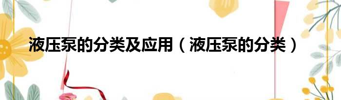大家好,今天小六子来为大家解答以下的问题,关于液压泵的分类及应用,液压泵的分类这个很多人还不知道,现在让我们一起来看看吧!