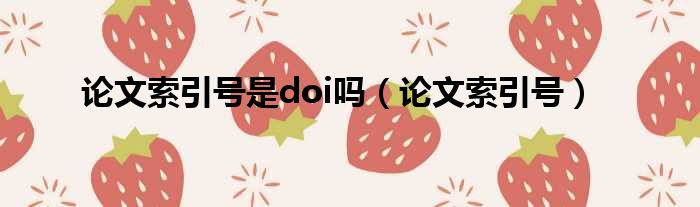 大家好,今天小六子来为大家解答以下的问题,关于论文索引号是doi吗,论文索引号这个很多人还不知道,现在让我们一起来看看吧!