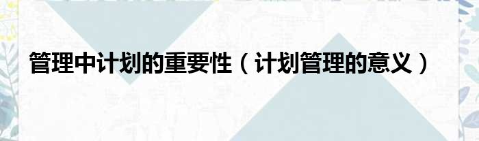 导读 大家好,今天小六子来为大家解答以下的问题,关于管理中计划的重要性,计划管理的意义这个很多人还不知道,现在让我们一起来看看吧!1、无论