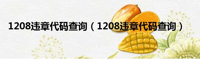 导读 大家好,今天小六子来为大家解答以下的问题,关于1208违章代码查询,1208违章代码查询这个很多人还不知道,现在让我们一起来看看吧!1、代码