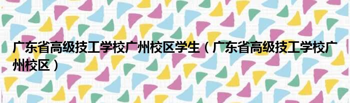 广东省高级技工学校广州校区学生(广东省高级技工学校广州校区)