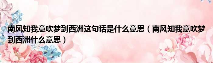 导读 大家好,今天小六子来为大家解答以下的问题,关于南风知我意吹梦到西洲这句话是什么意思,南风知我意吹梦到西洲什么意思这个很多人还不知道