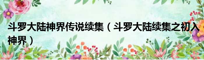 斗罗大陆神界传说续集(斗罗大陆续集之初入神界)