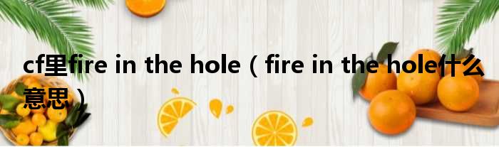 导读 大家好,今天小六子来为大家解答以下的问题,关于cf里fire in the hole,fire in the hole什么意思这个很多人还不知道,现在让我们一
