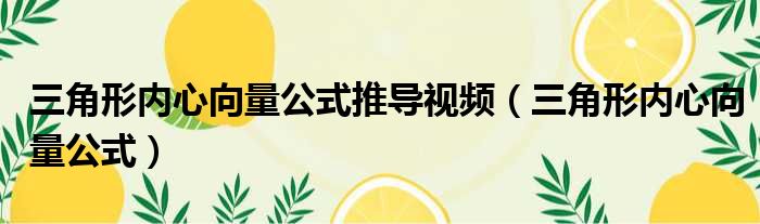 三角形内心向量公式推导视频(三角形内心向量公式)