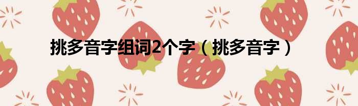 大家好,今天小六子来为大家解答以下的问题,关于挑多音字组词2个字,挑多音字这个很多人还不知道,现在让我们一起来看看吧!