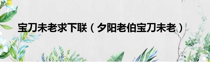 宝刀未老求下联(夕阳老伯宝刀未老)