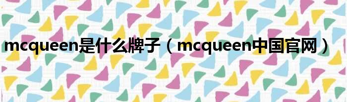 导读 大家好,今天小六子来为大家解答以下的问题,关于mcqueen是什么牌子,mcqueen中国官网这个很多人还不知道,现在让我们一起来看看吧!1、中国