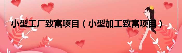 导读 大家好,今天小六子来为大家解答以下的问题,关于小型工厂致富项目,小型加工致富项目这个很多人还不知道,现在让我们一起来看看吧!1、开充