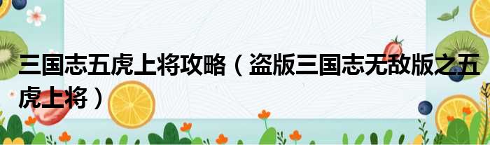 导读 大家好,今天小六子来为大家解答以下的问题,关于三国志五虎上将攻略,盗版三国志无敌版之五虎上将这个很多人还不知道,现在让我们一起来看