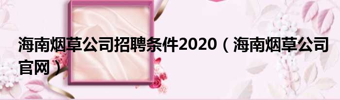 海南烟草公司招聘条件2020(海南烟草公司官网)