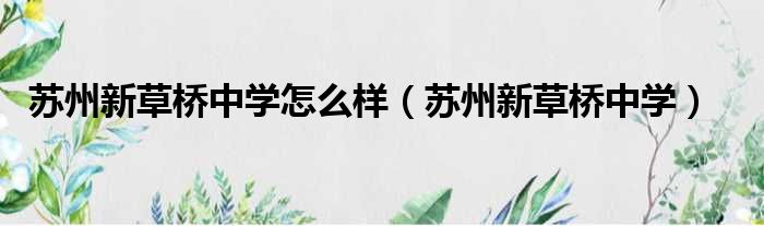 苏州新草桥中学怎么样(苏州新草桥中学)