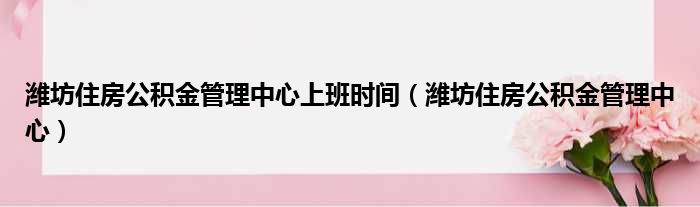 潍坊住房公积金管理中心上班时间(潍坊住房公积金管理中心)