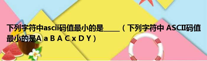 大家好,今天小六子来为大家解答以下的问题,关于下列字符中ascii码值最小的是_____,下列字符中 ASCII码值最小的是A a B A C x D Y这个很多人还不知道,现在让我们一起来看看吧!