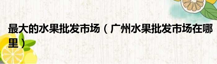 最大的水果批发市场(广州水果批发市场在哪里)